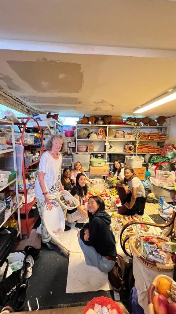 Des soupes, des plats mijotés, et d’autres délices étaient proposés par des cuisiniers et serveurs souriants, comme cette dame élégamment vêtue de rouge entourée de bols de plats prêts à être distribués. Les files d’attente se sont formées pour le service, montrant l’enthousiasme des convives à partager ce repas communautaire.