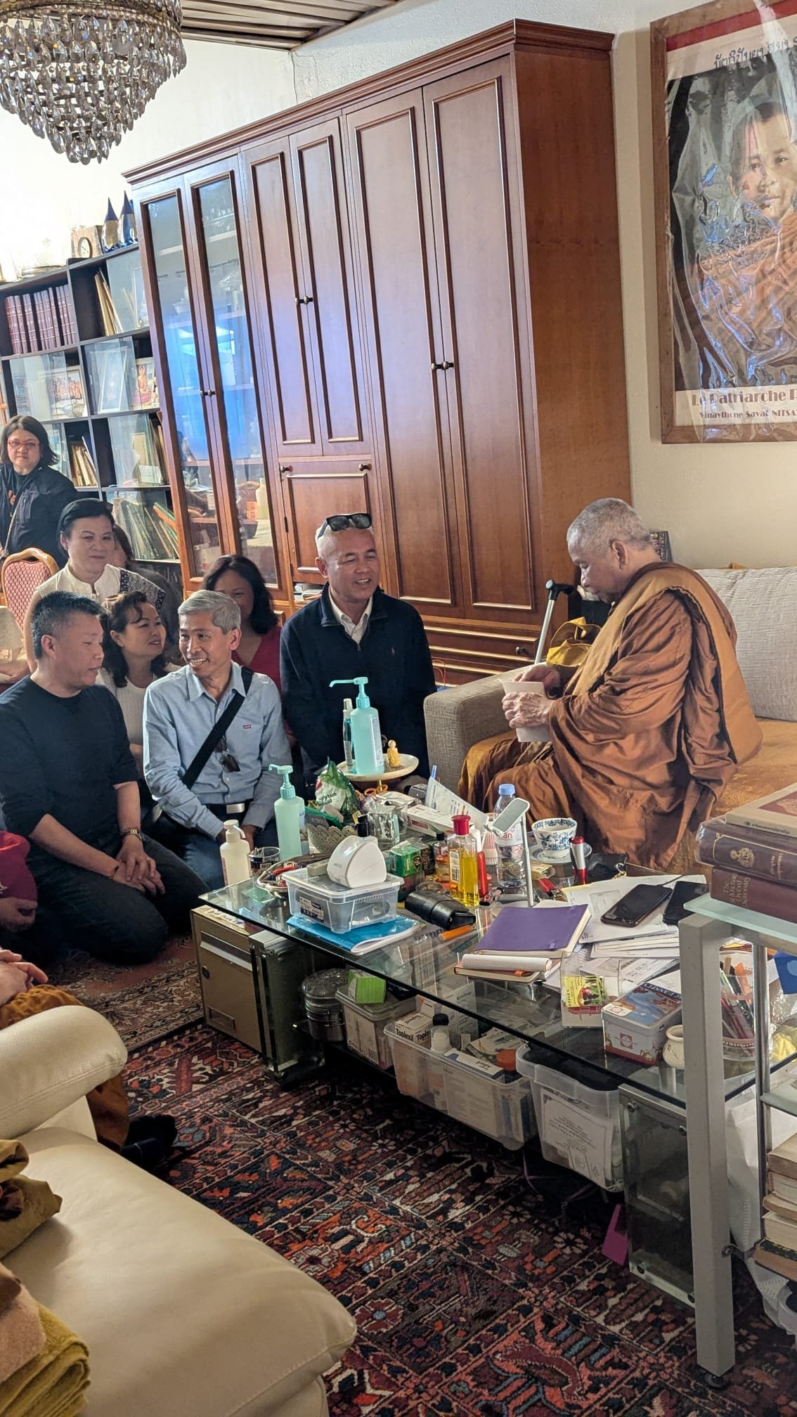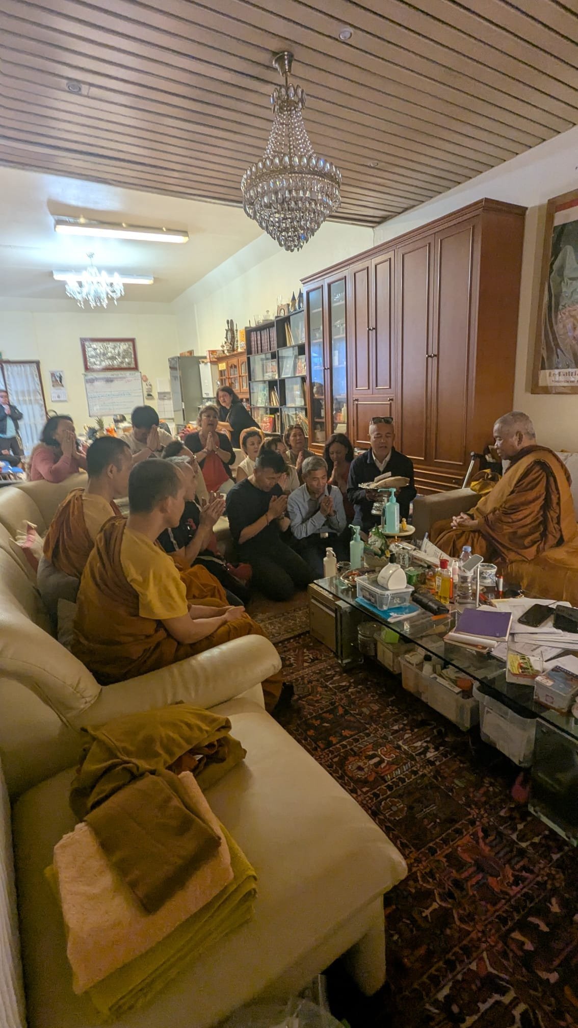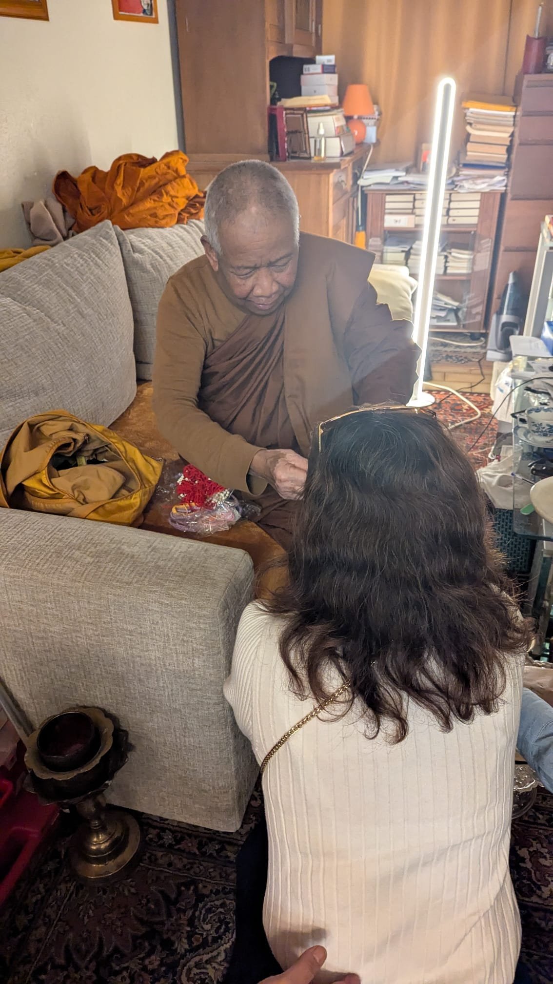 L’émotion est palpable lorsque nous remettons l’enveloppe au Grand Vénérable après une longue séance de comptage dans même lieu. Ses yeux s’illuminent en découvrant le fruit de nos efforts. Un sourire bienveillant éclaire son visage tandis qu’il exprime sa profonde gratitude pour notre dévouement, murmurant des paroles de sagesse et de prospérité pour nous tous. Puis, avec une douceur infinie, il entame la cérémonie des ficelés. Pour chacun d’entre nous, il prend un fin cordon de couleurs et le noue délicatement autour du poignet. Chaque nœud, symbole de protection, de santé et de bonheur, vient sceller ces précieuses bénédictions. Un sentiment de joie et de fierté nous envahit. Savoir que cette somme généreuse contribuera aux besoins de la pagode et de sa communauté, enrichi de cette marque spirituelle, est notre plus belle récompense. La fatigue s’estompe devant ce moment de partage et de communion, renforçant les liens qui nous unissent au sein de l’association.