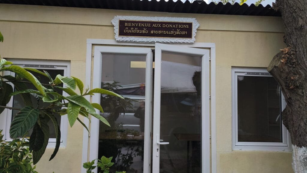 Au-dessus de la porte d’entrée, la plaque « BIENVENUE AUX DONATIONS », écrite en français et en lao, trône désormais fièrement. Elle symbolise la réussite de ce chantier solidaire.